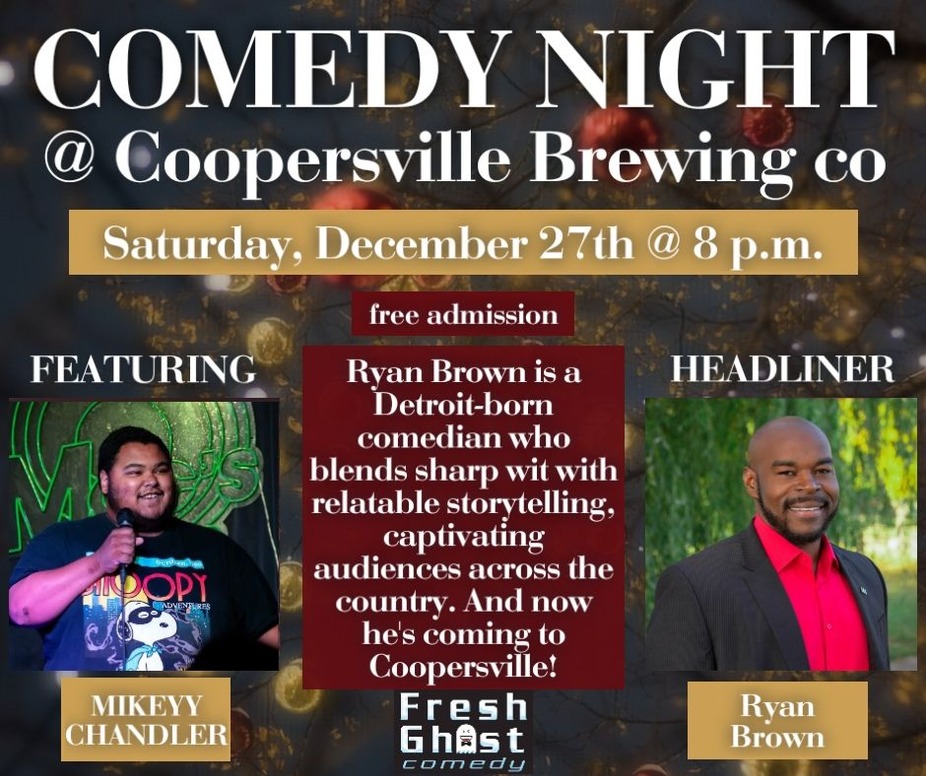 Come join us for our last stand up comedy show of the year. As always admission is free as a thank you to the Coopersville Brewing Co customers. Our headliner Ryan Brown is a Detroit-born comedian who blends sharp wit with relatable storytelling, captivating audiences across the country. Growing up in the Motor City, Ryan developed his comedic voice by turning everyday struggles and absurdities into laugh-out-loud moments. With a style that's equal parts raw and charming, he tackles topics ranging from family life to pop culture, keeping his material fresh and engaging.